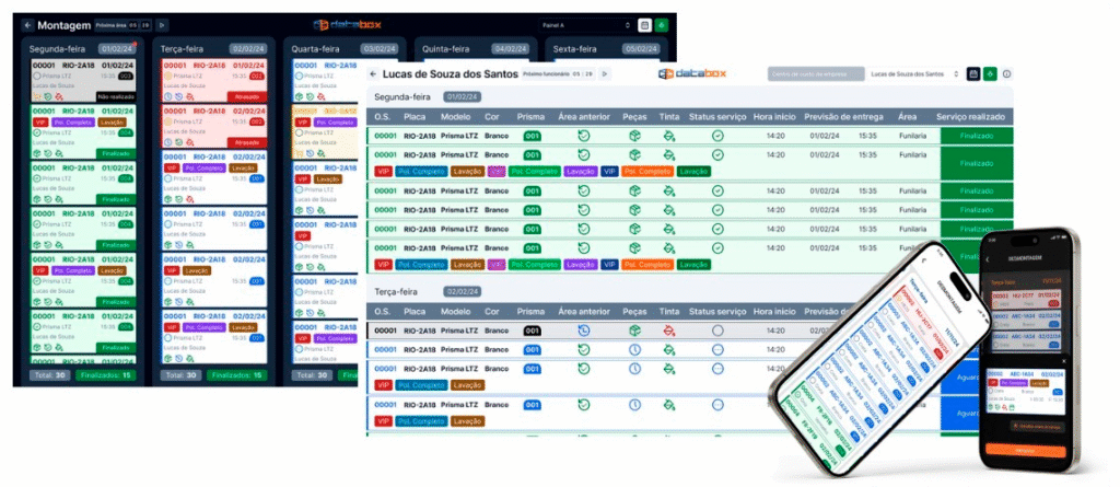 Chega de quadro branco, anotações avulsas e instruções confusas. Com o Painel Produtivo da Databox, sua oficina organiza o fluxo de produção com clareza, previsibilidade e agilidade.
