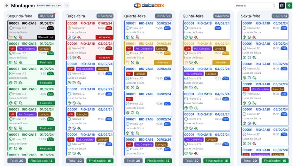 O painel produtivo é uma ferramenta projetada especificamente para oficinas de funilaria e pintura, oferecendo recursos altamente customizáveis e intuitivos. Com ele, você pode: